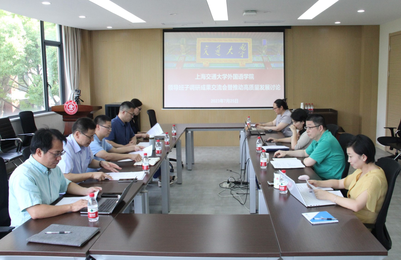 丁剑、常辉、邢连清、陶庆、朱一凡、尚必武分别围绕“深化制度化建设,保障学院可持续高质量发展”“新时代外语学科的机遇与挑战”“高质量党建引领一流学科可持续发展——师资队伍建设角度”“新文科背景下外语人才培养目标与路径”“外院专业教育和思政教育融合提升”“高水平、标志性外国语言文学科研成果产出”等方面汇报了专题调研情况。