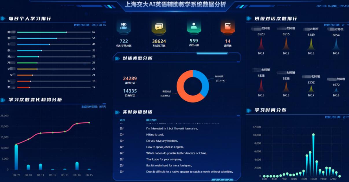 近期,上海交通大学面向新生的“筑力学习营”正式开营。相关负责人介绍,与以往不同的是,上海交通大学这次与网班科技合作,在“筑力学习营”英语课程中引入了最新的大语言模型应用AI英语Go,这是一款基于LLM和微信小程序的人机对话系统,让同学们能一对一地与基于GPT模型的数字人老师进行面对面的英语对话训练。
