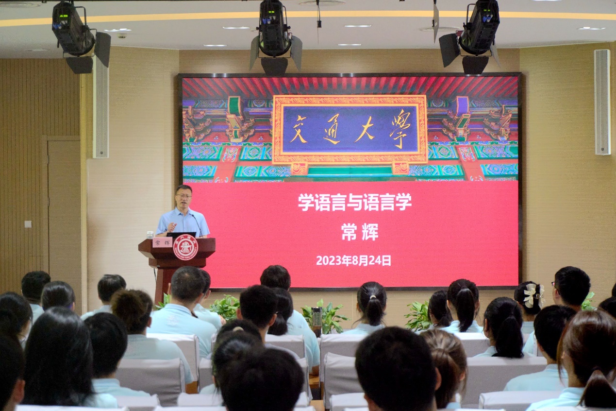 常辉鼓励同学们要学习交大敢为人先、外院低调务实的精神,并就“为何学习外语、为何研究语言、交大外语学科”三个方面进行深入阐释。
