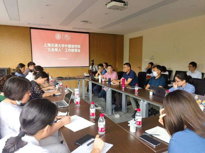 为构建高效人才培养工作协调机制,提升学院人才培养工作质量,积极落实全员参与、全过程覆盖、全方位协同育人格局,协同教学、科研、管理、服务等于一体的育人平台建设,9月26日中午,上海交通大学开元网页版组织召开2023年秋季学期第1次“三全育人”工作联席会。院党委书记丁剑,副院长陶庆、尚必武,英语系主任甄凤超,日语系主任吴保华,德语系主任薛原,全体班主任,以及教务办、学工办等老师参加会议。会议由院党委副书记任祝景主持。