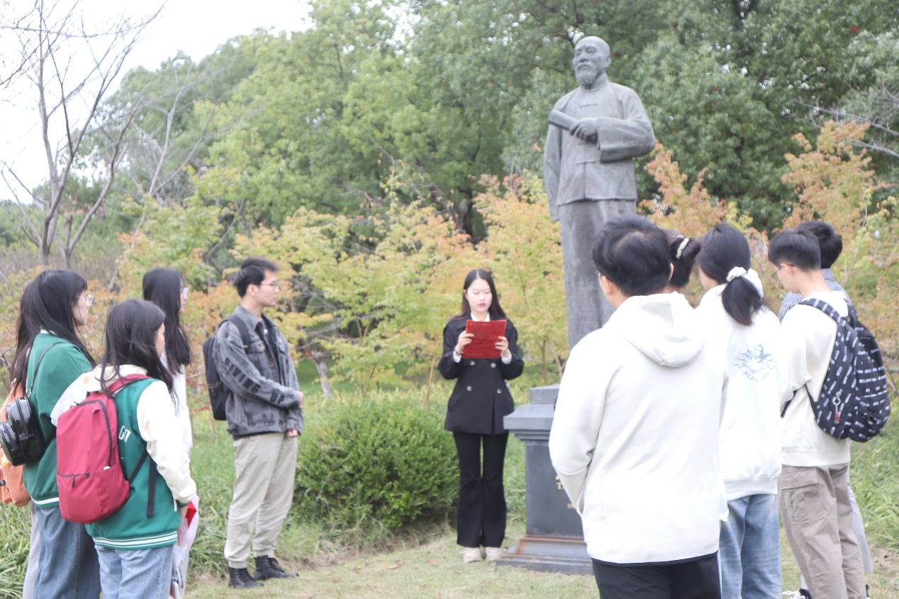 研究生新生党员代表闫帆在白毓崑烈士纪念碑前为大家介绍了白毓崑烈士在上海交大求学、毕业后任教于多所学校并积极宣传革命思想的革命事迹。辛亥革命爆发后,白毓崑领导了滦州起义,失败后英勇就义。留下的绝命诗最后一句是——希望后起者,同志气相连,此身虽死了,千古美名传。在此,新生党员们感悟了先辈伟大的革命精神和浓厚的爱国情怀,传承红色基因,赓续中国共产党人精神血脉,并以先辈们为榜样,立志做有理想、敢担当、能吃苦、肯奋斗的新时代好青年。