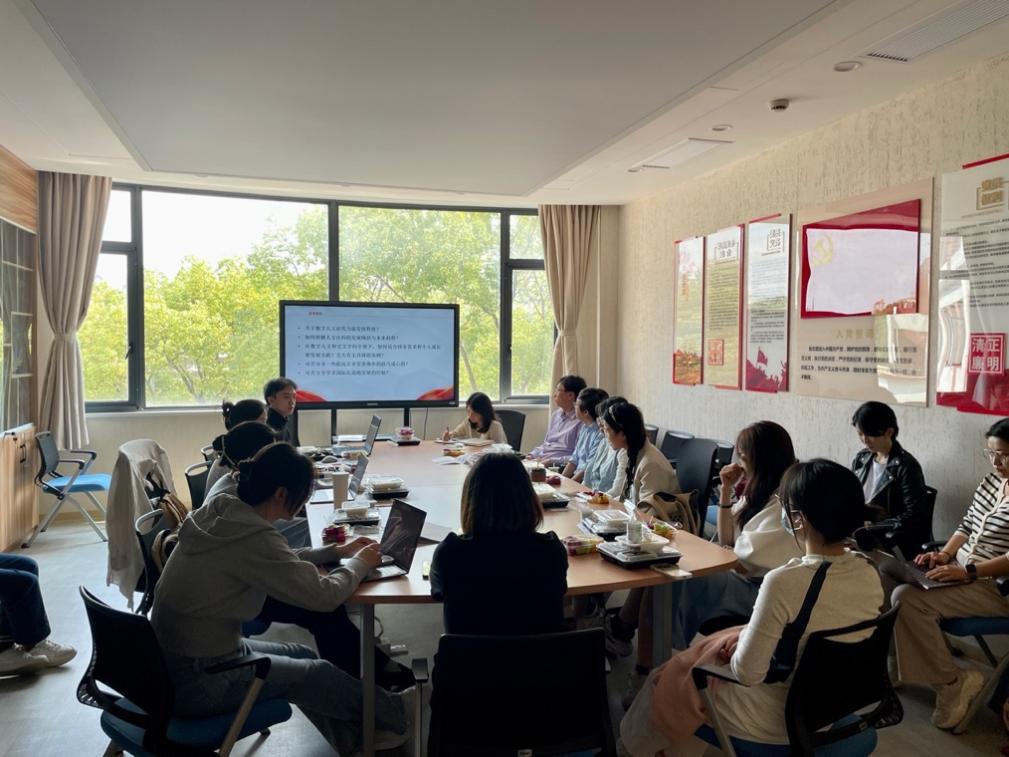 2023年10月24日中午,博士生第一党支部于杨咏曼楼225会议室举办了系列活动的第一场“组织力引领科研团队”共建交流会。学院党委副书记任祝景老师列席会议,支部书记何宁同学主持会议。共建活动邀请学院第五教工党支部的支部书记王品老师及邹理、汤轶丽、丁瑶与敬如歌老师,对二十大精神和专题学习的深度解读,数字人文和交叉学科引领下的学术前沿,国家需求和个人成长的发展实践三个方面进行交流分享。