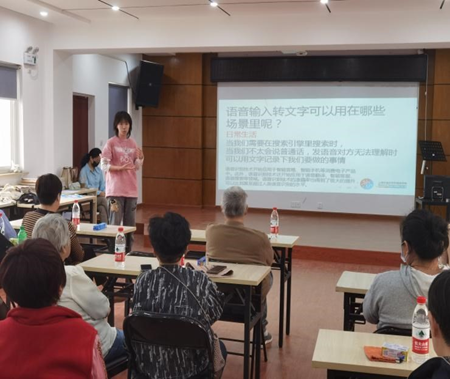 乐享智能新事物,老年人也不落伍。近年来,使用微信的老年人越来越多,可“拼音输入玩不转,逐字手写速度慢”成了爷爷奶奶们使用微信时的一大痛点。针对这一问题,开元网页版英语系孙启涵同学就“如何用语音输入转文字”开展互动教学。孙同学先为大家介绍了语音转文字的发展过程、应用场景,又根据不同的手机型号,对操作步骤进行逐一讲解。考虑到老年人的需求,孙同学还补充了方言识别功能的使用办法,并现场开展一对一互动教学。