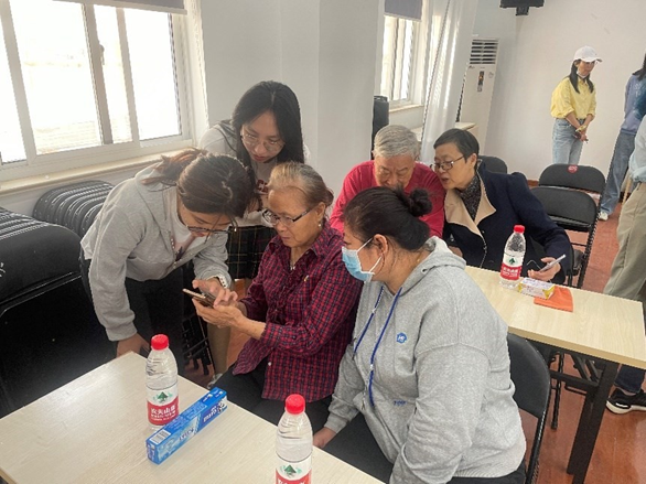 志愿者同学耐心辅导居民操作