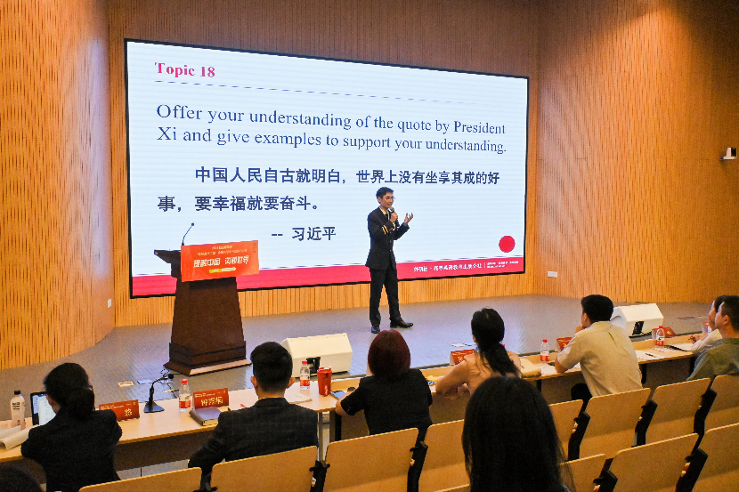 丁剑强调讲好中国故事、传播好中国声音的重要性,鼓励学生在大赛中展现个人风采,成为高素质外语人才,为进一步提升我国国际传播人才自主培养能力,推动中国更好走向世界、世界更好了解中国做出更大贡献。