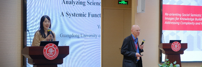 广东外语外贸大学何宇菲博士的主旨发言题为“Analyzing science interactive animations: A Systemic Functional Semiotic perspective”。何宇菲博士全面阐释了从系统功能符号学角度对科学教育动画进行分析的路径和要点,并通过具体分析展示如何通过系统功能符号学关键概念对不同类型的动画进行系统的描述。