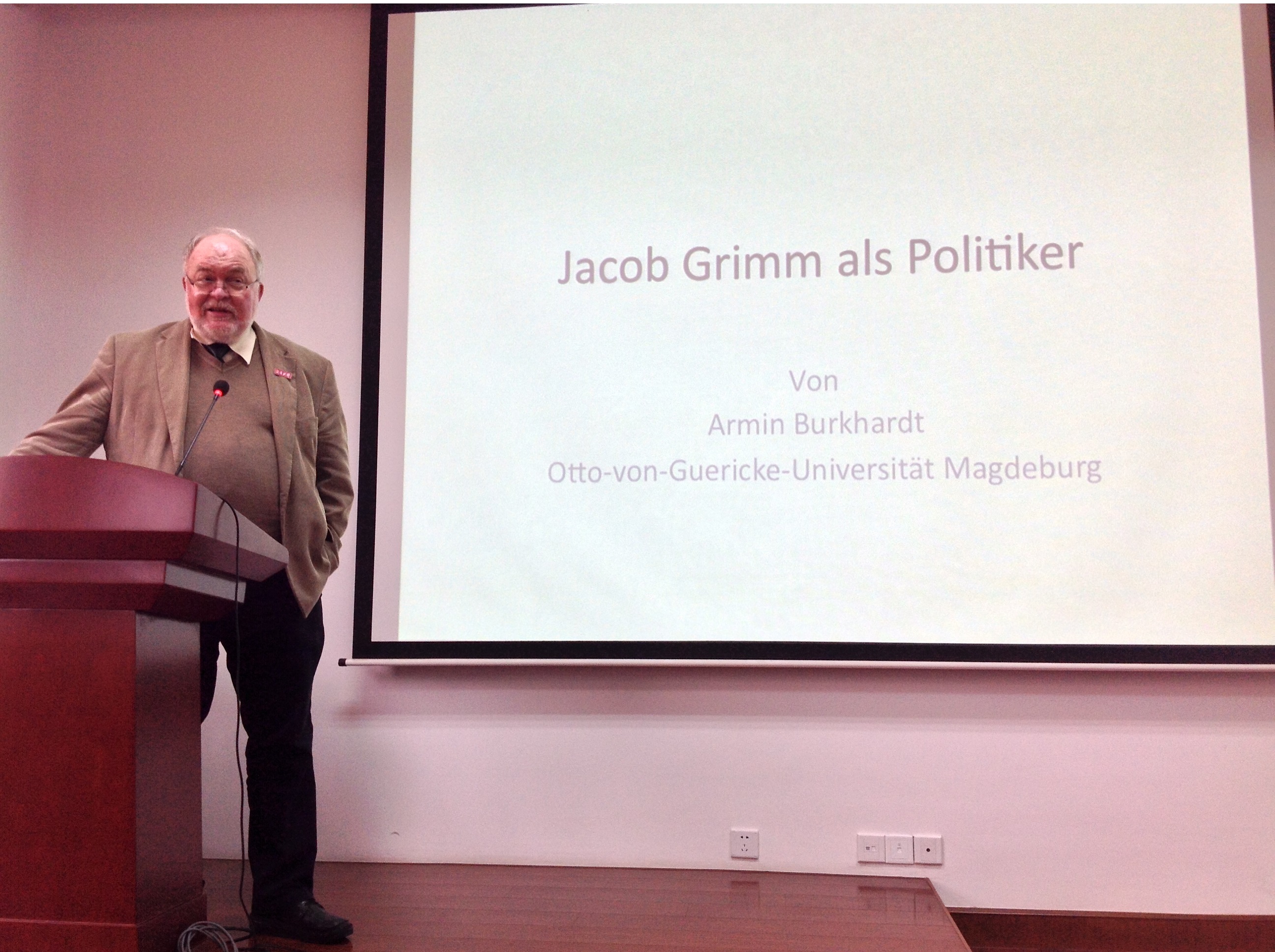 2014年2月26日,上海交通大学开元网页版客座教授、德国德语协会主席Armin Burkhardt受邀在外院一楼报告厅进行了一场题为“Jacob Grimm als Politiker(作为政治家的雅各布·格林)”精彩的德语讲座。