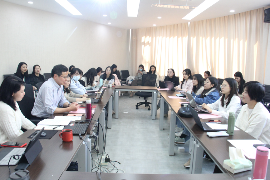 在师生互动交流环节,党支部的老师们从不同角度跟同学们交流了就业相关经验。林苡老师就硕转博的基本要求、如何处理学习与科研之间的关系以及硕士期间如何为读博做准备向大家分享经验。她鼓励大家增加学术积累、提高综合素质、锤炼乐观向上的心态,以健康的体魄为攻读博士做好准备。金晶老师则介绍了“核心+卫星”的简历投递策略,以提高简历的通过率。并就如何找到适合自己的岗位、学生思维与职场思维的转换等给出建议。第一教工党支部书记江妍老师向同学们分享了她实习、读博的个人经历,鼓励同学们不要焦虑,踏实做好每一件事,走好每一步,自然会有好的收获。与会老师和同学也就读博深造、面试求职、考公等问题与大家进行了深入的交流。
