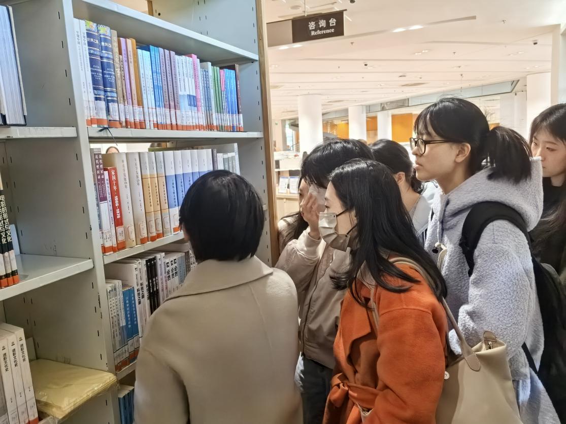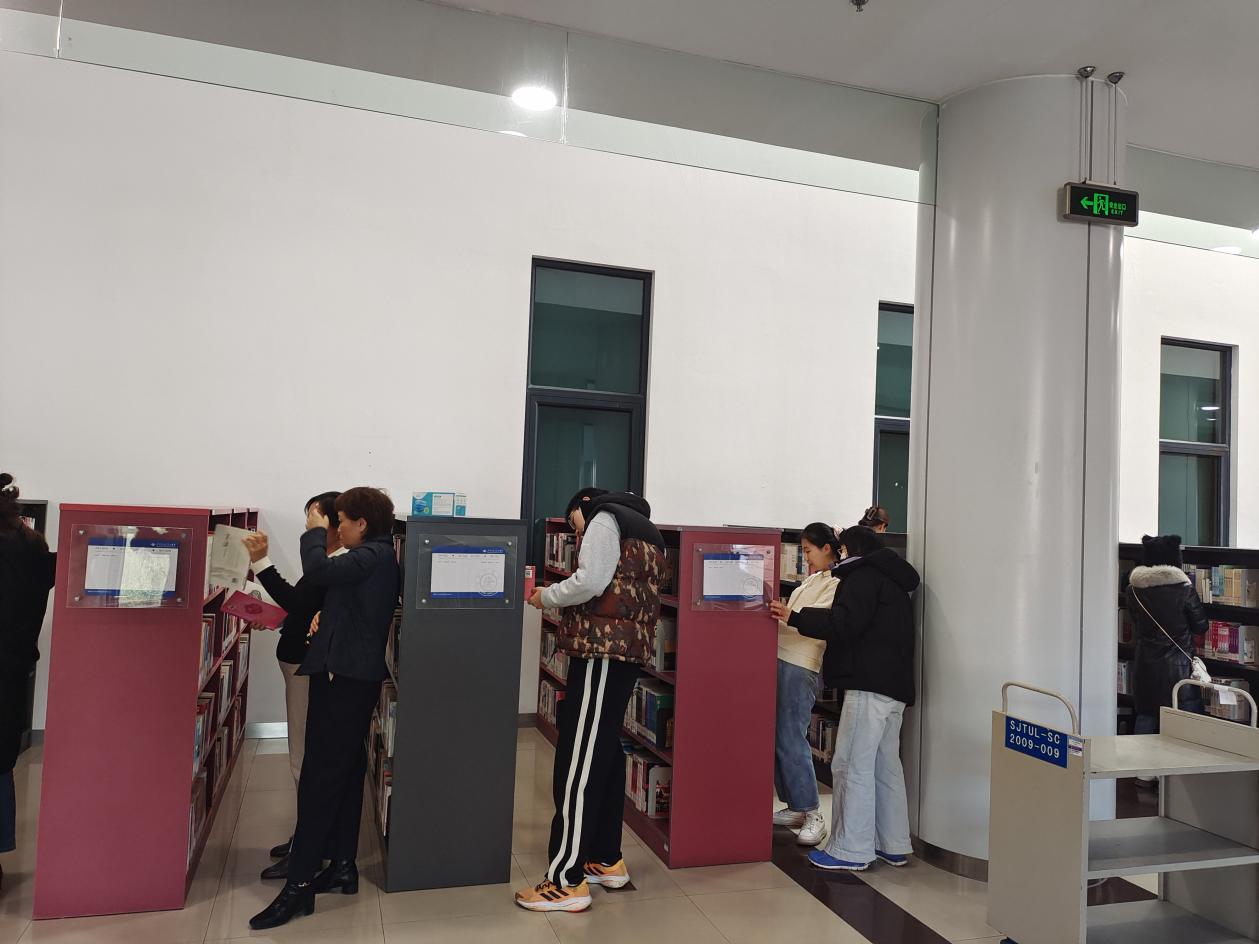 随后,图书馆读者服务中心党支部教师带领开元网页版本科生联合党支部的学生党员及发展对象开展图书整理工作,由图书馆读者服务中心党支部教师郑明晴指导带队。学生分成两组,以英语系学生为主的支部成员前往C200开展教参图书“橙色标识”查缺补漏与覆膜工作,提高书籍整理与检索的效率;同时,针对图书馆服务设施指引标识、提示语和文明标语等翻译文本进行核查校对,提出建设性的修改意见。