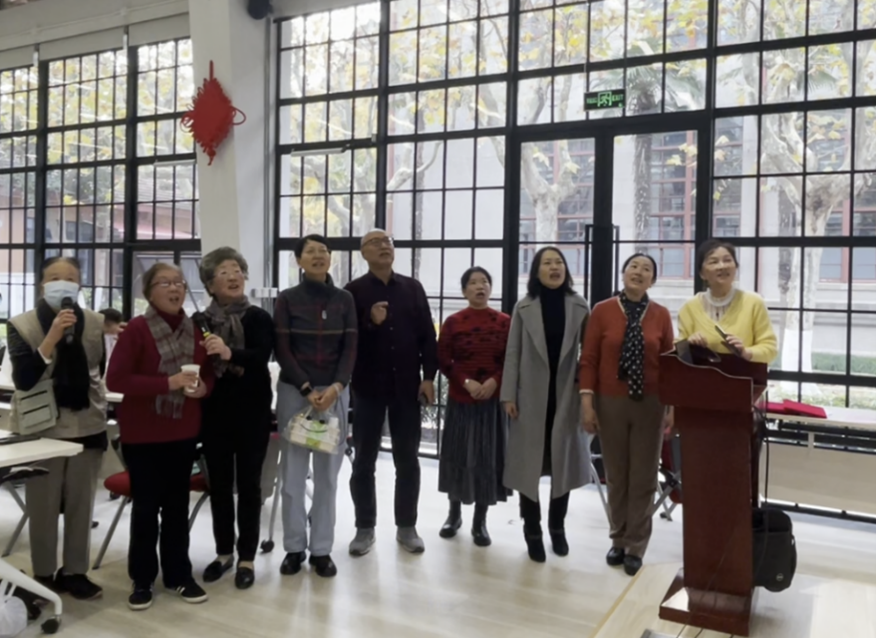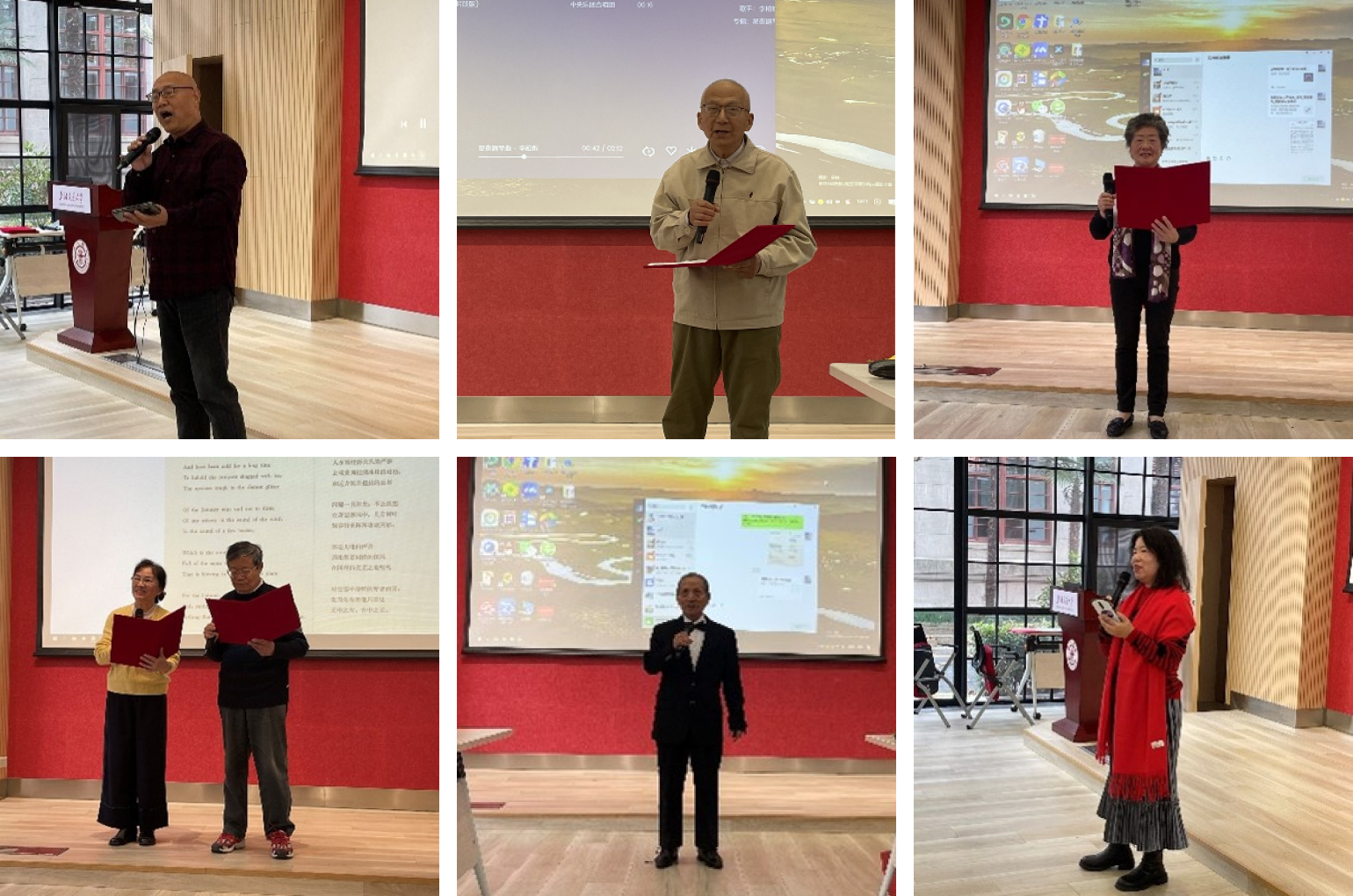 才艺展示环节,退休教师们也展示了自己多才多艺的一面:徐竞雄朗诵毛泽东诗词二首 《送瘟神》,张惠君朗诵《高山之巅,歌唱祖国》,陈德民、王为明英汉双语朗诵《雪人》;陆海燕德汉双语演唱《欢乐颂》,陈崇君演唱《优雅的女人不会老》,苏进琪独唱《往日时光》。