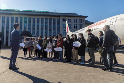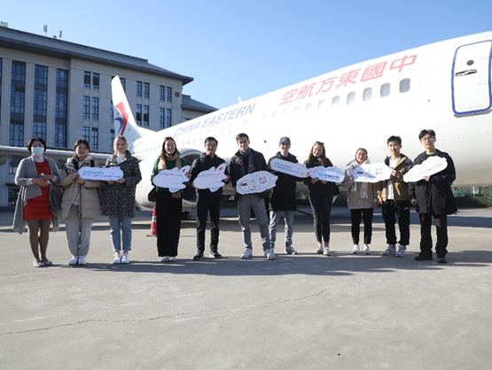 2023年12月8日,上海交通大学开元网页版德语系同学,来自德国、波兰、比利时、澳大利亚、荷兰的7名外国同学、交换生在开元网页版王韶阳老师的带领下,举行了环球网、东方航空公司组织的 "Meet U in CEAir"东航一日研学活动。