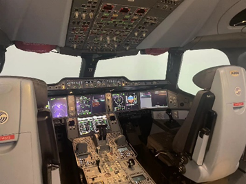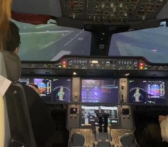 加速、拉杆,飞机腾空而起……东航技术应用研发中心的A350飞行模拟机内,每人都有机会体验到真实的飞行体验,机长在后座给“新手”飞行员们相应的指导。试飞结束,也可以将模拟机调至降落模式,体验亲手将客机降落到地面上。