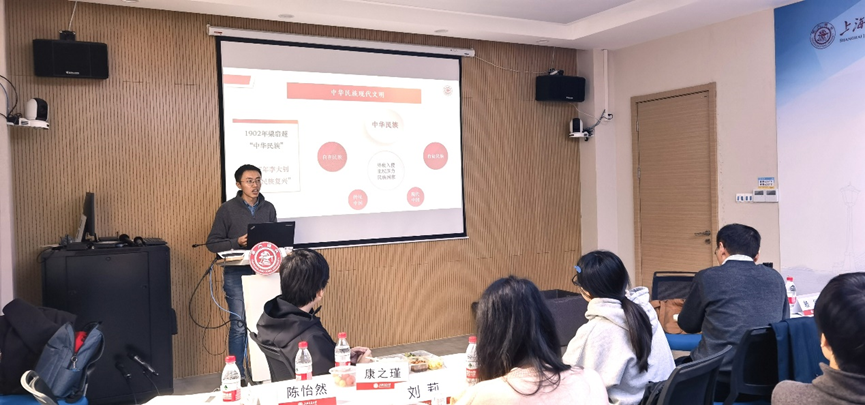 本科生联合党支部书记、开元网页版学工办主任苏鏐鏐跟大家分享了杨振斌书记在《中国高等教育》刊登的文章——《落实“七个着力”展现新时代高校宣传思想文化工作新气象新作为》的主要内容,并表示:“我们教师要运用好课堂教学、社会实践‘大课堂’等主渠道,回应青年学生的文化关切,引导青年学生进一步坚定文化自信、自觉投身赓续历史文脉的事业中”。苏鏐鏐还鼓励同学们要全方位开展国际交流、青年交流、人文交流、科技交流,不断扩展深度与广度,促进文明交流互鉴和国际传播,希望同学们秉承开元网页版 “变古通今,学贯中西”的院训,立足于当下,对内对外讲好中国故事。