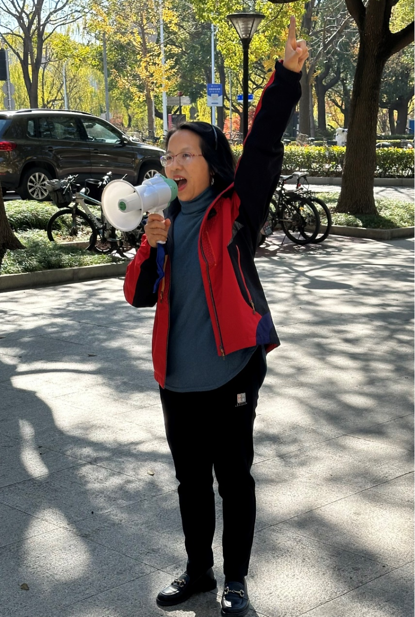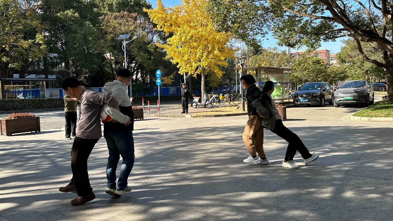 体育系朱慧芳老师应邀莅临活动现场,专业指导所有参加人员进行运动前热身。冬日里一缕缕明媚阳光透过泛黄的秋叶,如同舞台璀璨的灯光,外院的老师们灵动的身影,宛如秋天画布上的妙笔。