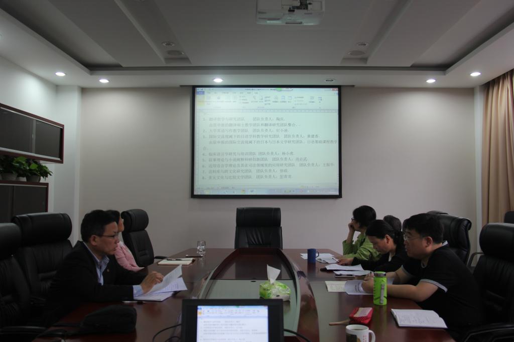 当前学院正在制定以制度激励为核心的综合改革方案,组建教学科研团队是其中重要的一项改革内容。此次学院共组建8个教学科研团队,分别是翻译教学与研究团队、大学英语写作教学团队、国际交流视阈下的日语学科教学研究团队、临床语言学研究与培训团队、叙事理论与小说阐释科研创新团队、适用语言学理论及其在司法领域里的应用研究团队、语料库与跨文化研究团队、多元文化与比较文学团队等。