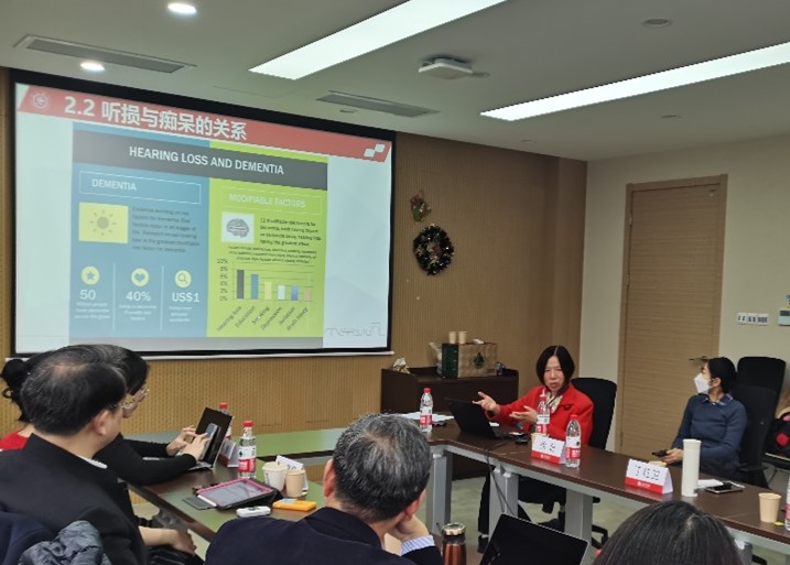 丁红卫教授展示了其团队围绕着言语沟通在整个生命周期的相关研究,介绍了目前改善助听技术减缓老年认知衰退研究的重要性。她表示作为语言学跨学科研究,我们需要将语言-认知-情感三者综合考虑,进一步推进语言作为精神健康生物社会标志物的研究,同时也完善语言学的理论框架,促进临床研究。