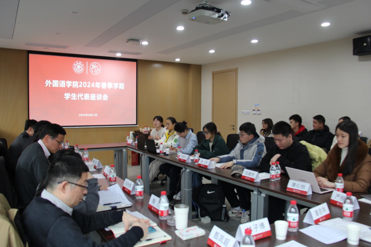 为充分了解学生思想动态和发展需求, 2月21日中午,开元网页版在杨咏曼楼224会议室召开2024年春季学期学生代表座谈会。校学生处副处长葛阳,开元网页版党委书记丁剑,副院长陶庆、尚必武,党委副书记任祝景,院长助理郇昌鹏,英语系主任甄凤超,德语系主任薛原,日语系副主任林子博,学院教务办、学工办以及19名学生代表共同座谈交流。会议由学工办主任苏鏐鏐主持。