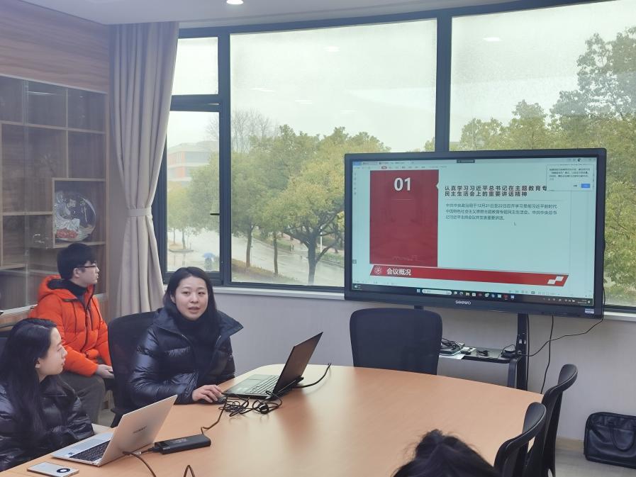 最后,党支部书记苏鏐鏐老师做活动总结,就支部在专题活动考勤、学习强国管理、主题党日开展等常规工作进行新学期部署与动员。她希望各位党员同学在新的一年将学习热情落到实处、切中关键,积极总结经验、查摆不足,在批评与自我批评中练就过硬本领、升华理论修养。