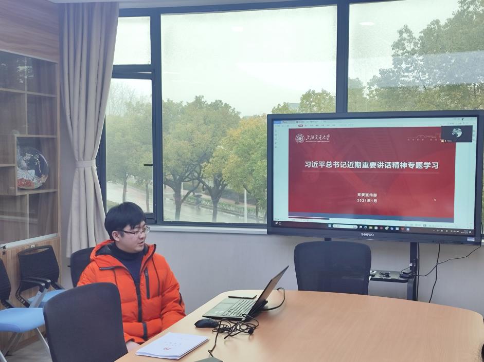 接着,支委何佳浩同学带领同学们一同学习习近平总书记二〇二四年新年贺词,重温过去一年全国人民在党中央坚强领导下砥砺初心、不懈奋斗的坚实步伐。习总书记温暖的话语、殷切的期盼,激励着支部党员在新年中继续攻坚克难、敢闯敢拼,于民族复兴的伟大征程中铆足底气、迈出神采。随后,支部党员同学们共同重温入党誓词,增强党员意识,强化党性观念,不忘初心,砥砺前行。