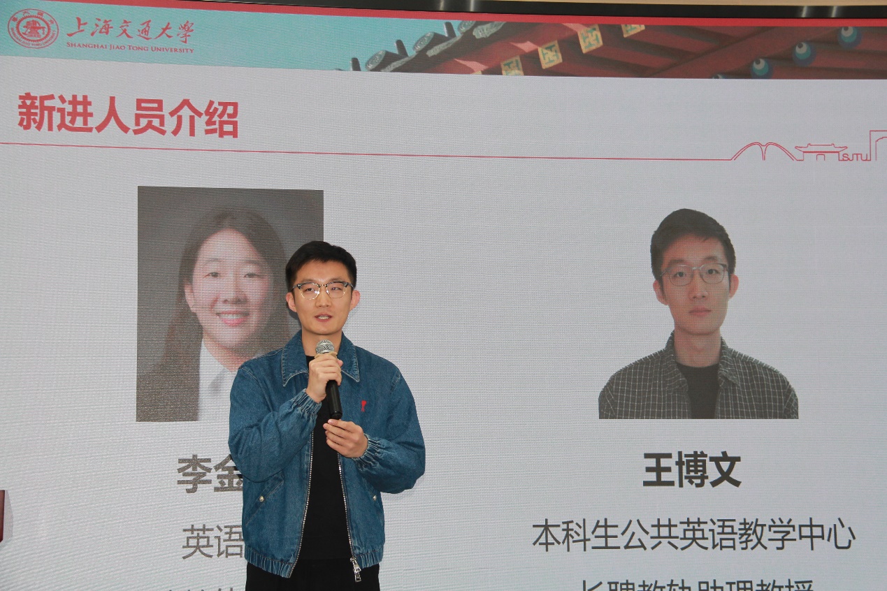 欢迎新进教职工环节,李金彩、王博文两位新进教师作自我介绍。