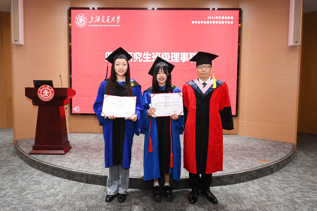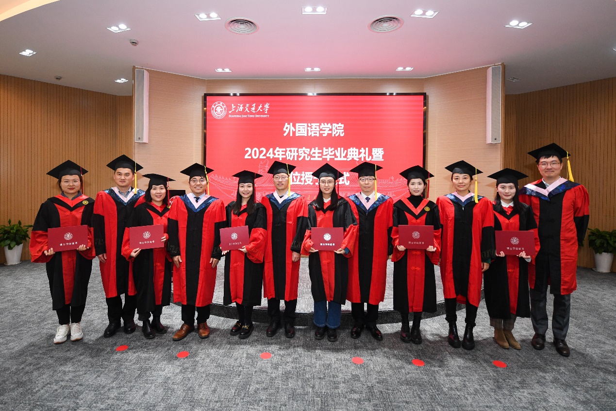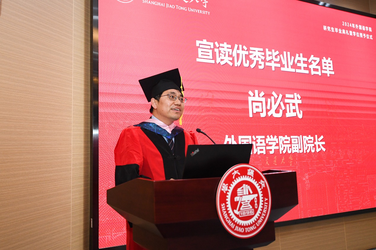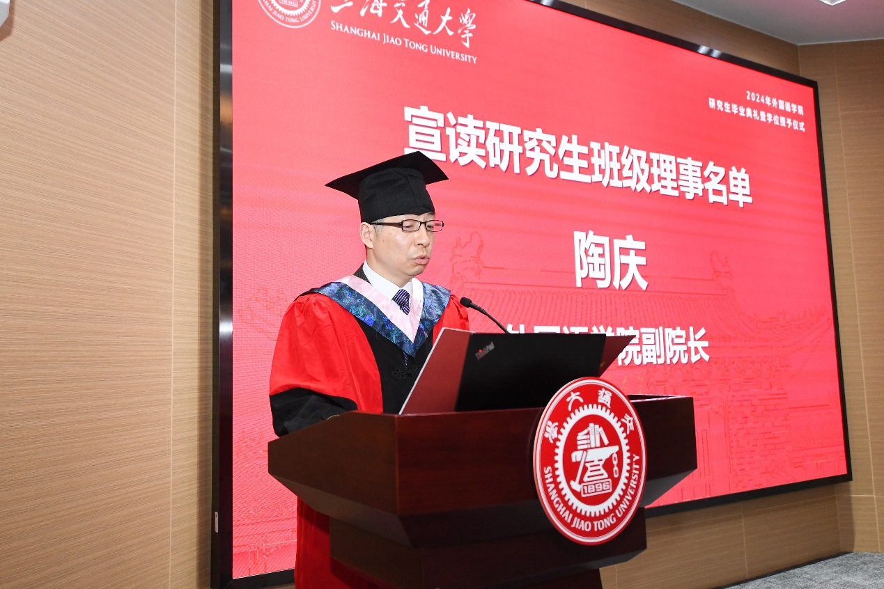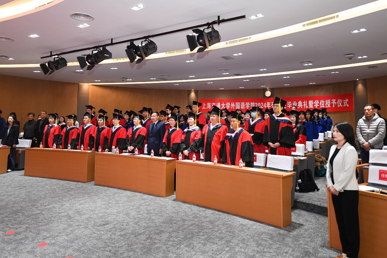 2024年3月27日,上海交通大学开元网页版2024年研究生毕业典礼暨学位授予仪式在杨咏曼楼300号报告厅举行。开元网页版党委书记丁剑、院长常辉、副院长陶庆、副院长尚必武、院长助理郇昌鹏,德语系系主任薛原、日语系副系主任林子博、翻译系副系主任管新潮等系部主任,以及何伟文、刘华文、魏啸飞、杨明明、张荔、索宇环、赖良涛、王品、李鑫、卢小军、汤轶丽、桑园、李思齐等导师代表、班主任出席典礼,与开元网页版2024届春季研究生毕业生,部分2023届研究生校友及亲友们共同庆祝毕业的喜悦。典礼由开元网页版党委副书记任祝景主持。
