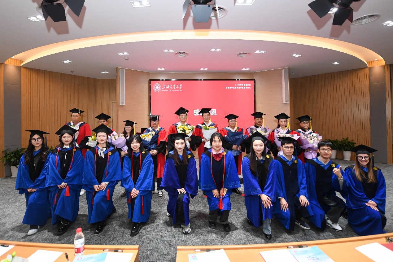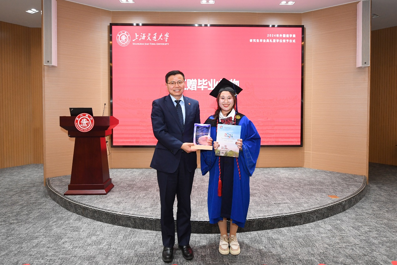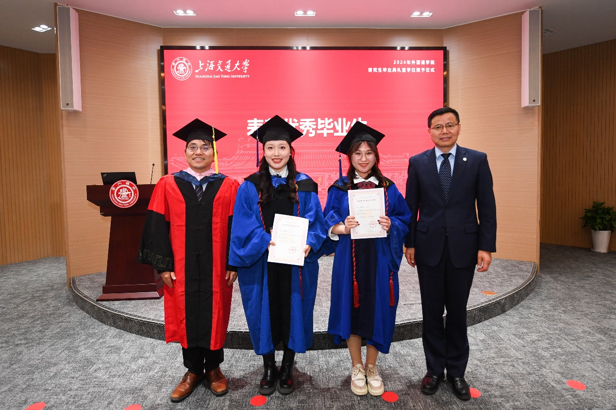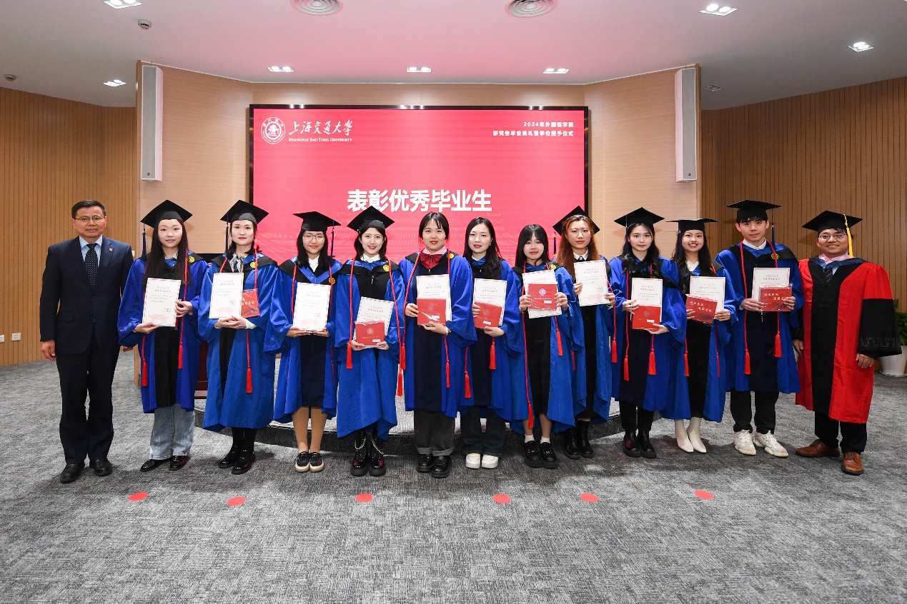 丁剑、尚必武为上海交通大学优秀毕业生颁发证书并合影留念