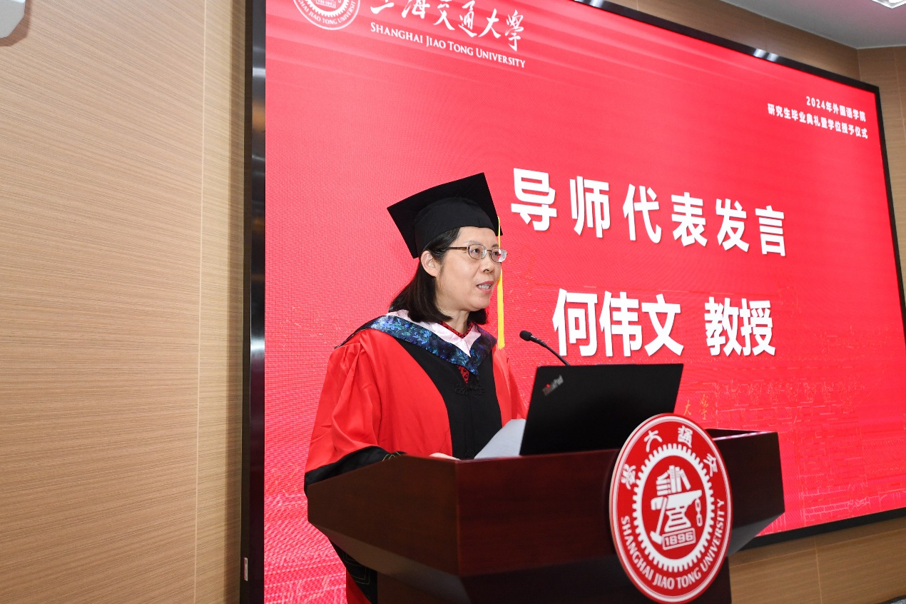 何伟文代表全体导师肯定了同学们在校期间的付出与努力,期待同学们继续发扬奋发向上的精神,保持积极向上的心态,注重实践能力的培养,将所学知识运用到实际工作中,不断提升自己的综合素养和能力水平,同时不断拓宽知识领域,深化专业研究,适应社会的发展和变化,实现自己的人生价值。