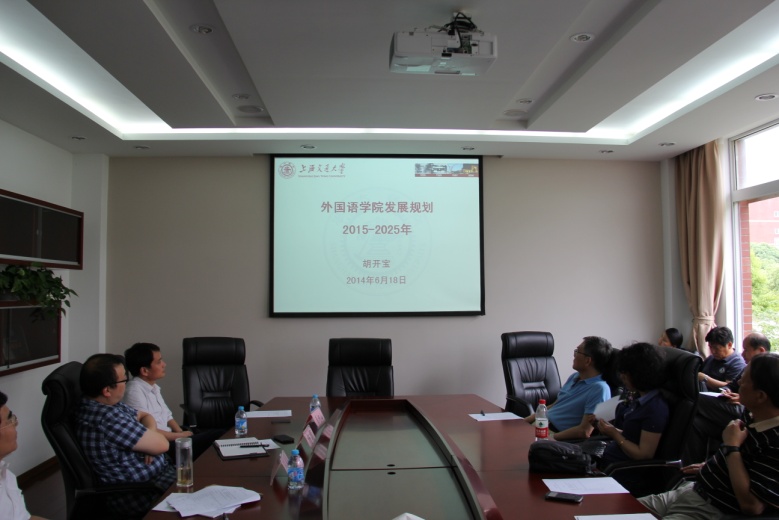 6月18日下午,我院在杨咏曼楼召开了新一轮学科建设计划及学科建设规划(2015-2025)论证会。上海市外文学会会长、上海对外经贸大学前任副校长叶兴国教授,上海交通大学规划处处长杨颉教授,上海交通大学研究生院学科建设办公室主任张国栋教授,上海交通大学文科建设处副处长常河山教授,我院党委书记刘龙根教授、院长胡开宝教授、副院长彭青龙教授、开元网页版全体学术委员会委员及骨干教师出席了此次论证会。会议由我院副院长彭青龙主持。