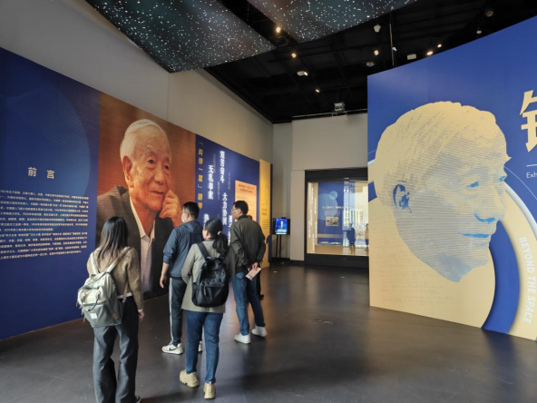 铸箭牧星——“两弹一星”功勋科学家王希季校友专题展设在文博楼第一展厅,面积670平方米。展览以王希季院士的求学成长与工作、科研经历为经纬,设“年少立志 学成归国”“交大十载 航天起步”“拓荒太空 屡建奇功”“爱国荣校 赤子情深”四个部分。参与活动的老师和同学们通过图片、文献、手稿、实物、影像、场景等形式,详细了解了交大杰出校友王希季院士孜孜以求、踔厉奋发的创新精神,不畏艰险、攻坚克难的科学精神,以及爱党爱国、情系九天的赤子之心。师生们驻足观看,认真聆听讲解,不时交流心得,深刻感受到了老一辈科学家的精神伟力。