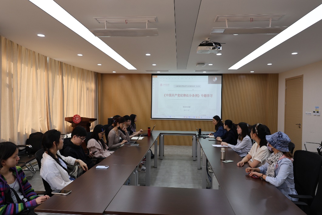 会上,苏鏐鏐对《中国共产党纪律处分条例》专题进行领学,强调党员同学应增强政治定力、纪律定力、道德定力、抵腐定力,始终做到忠诚干净担当。坚持个人学习与集中学习相结合,将党的政治纪律、组织纪律、廉洁纪律、群众纪律、工作纪律、生活纪律融入日常,抓在经常。随后,苏鏐鏐结合《中国共产党纪律处分条例》的总则修订对照为同学们作重点解读,强调时刻用党的纪律严格要求和约束自己,把严明的政治纪律和政治规矩摆在首位,坚定不移砥砺初心使命,不断加强党性修养。