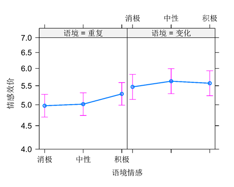 图3. 在两种不同语境变异条件下三种情感语境中的情感效价评分
