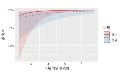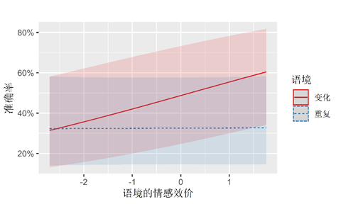 图4. 语境的变异性和语境的情感效价在单词正字法选择任务的交互效应