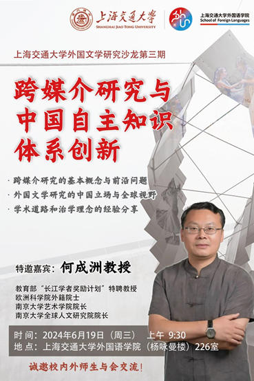 上海交通大学外国文学研究沙龙第三期之“跨媒介研究与中国自主知识体系创新”通知(中国·上海,2024年6月19日)