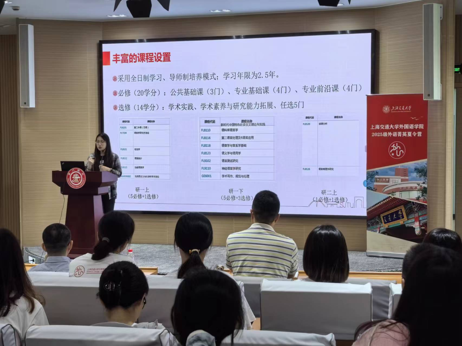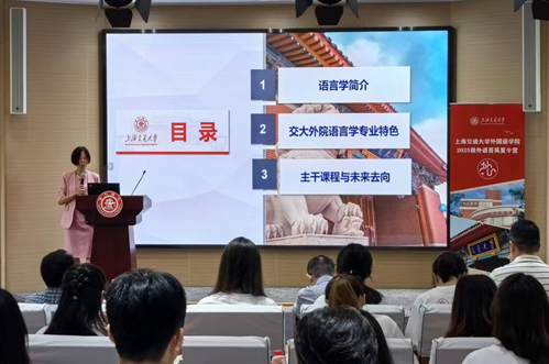 三位优秀在读研究生代表也向全体营员分享了就读体验。胡若臻同学通过自己的语言学习经历,对语言学方向的课程安排、多元化研究路径、强大的导师队伍、丰富的学术资源等进行了全面介绍;俞霁桓同学分享了就读期间自己在学术深度、人格养成以及生活丰富度三方面的切身感受;姜兆坤同学讲述了在翻译硕士专业学习的点点滴滴,邀请大家走进交大外院,感受外院独特魅力。