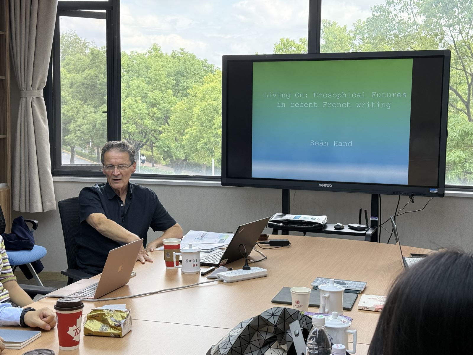 9月23日至25日,上海交通大学开元网页版跨学科叙事研究中心系列讲座第37、38讲成功举办,华威大学Seán Hand教授应邀为开元网页版师生作了题为“Living On: Ecosophical Futures in Recent French Writing”和“The Persistence of the Spider: Non-human Symptomatology in the Post-Holocaust Narrative Jan Karski”的两场学术讲座,来自不同专业的师生踊跃参加。
