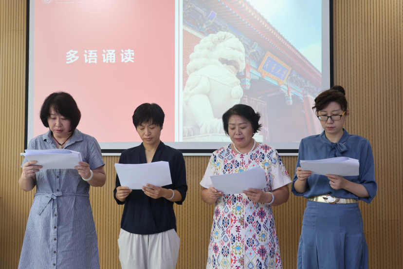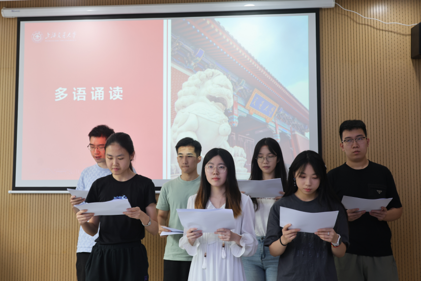 随后,四位老师与七位同学充分发挥专业优势,用中、英、日、德、法五种语言朗诵《中共中央关于进一步全面深化改革 推进中国式现代化的决定》,亲身实践对外讲述中国故事、传播中国声音。