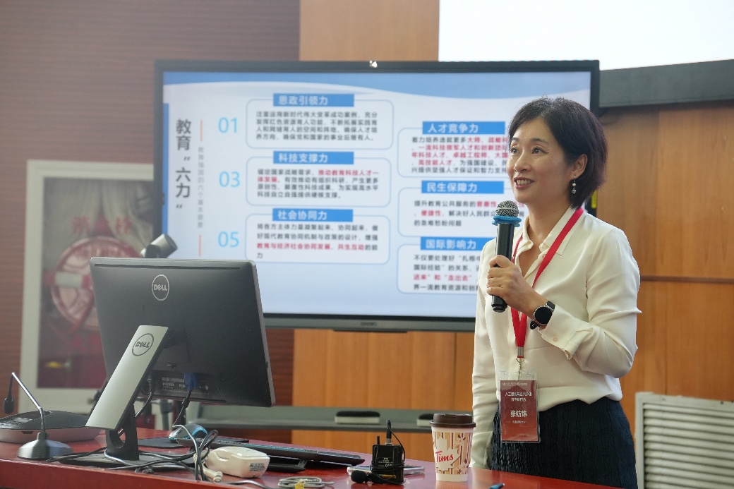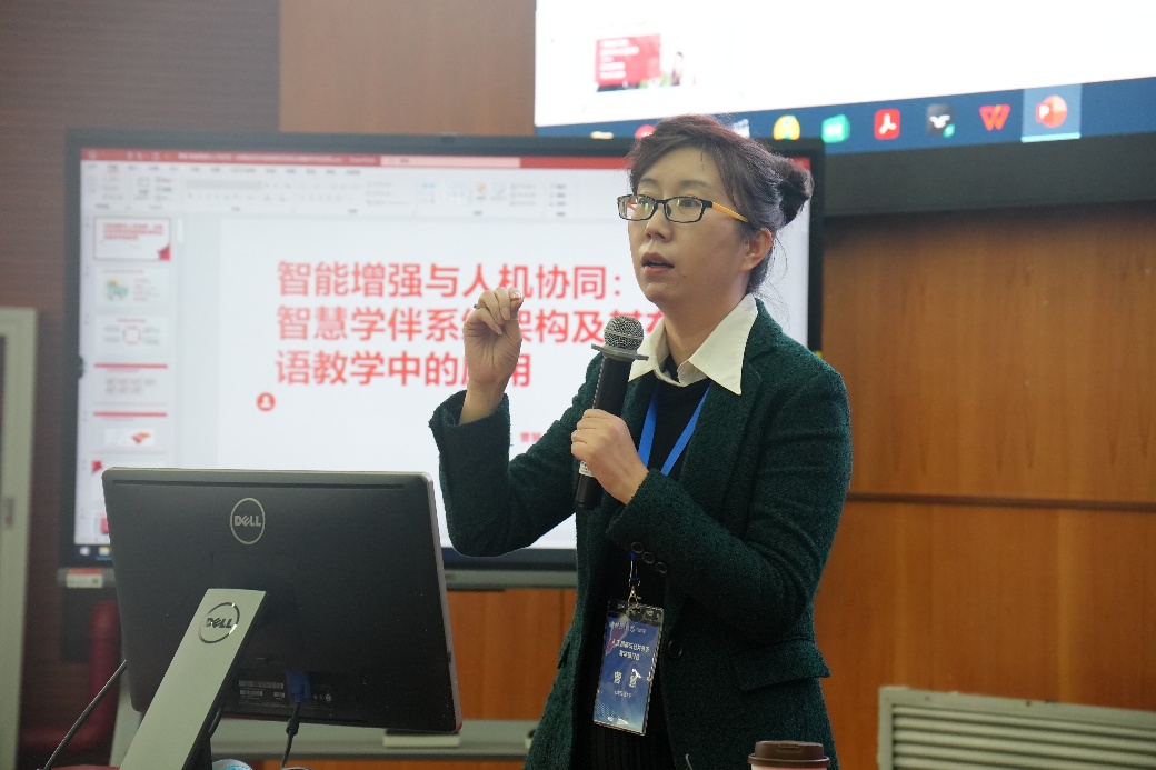 上海交通大学曹慧副教授以“智能增强与人机协同:法语智慧学伴系统架构及其在法语教学中的应用”为主题,介绍了法语智慧学伴系统的创新架构,详细讨论了该系统在提升学生批判性思维、协作能力等方面的应用,为智能化教学带来了新思路。