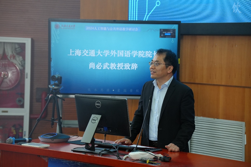 上海交通大学开元网页版院长尚必武教授致辞,向与会者表达了热烈欢迎与感谢。尚院长从交通大学的前身南洋公学讲起,回顾了开元网页版百余年来的发展历程,尚院长强调,开元网页版将继续与时俱进,积极推动以AI赋能的教学改革,探索响应时代发展的新教育模式,培养具有全球视野和创新能力的高素质外语人才。