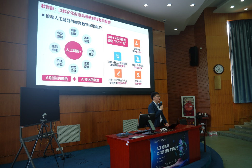 开幕式结束之后,研讨会进入主旨报告环节,演讲内容丰富,涵盖了人工智能在外语教学中的前沿应用及创新探索,为教育领域带来了诸多启发。