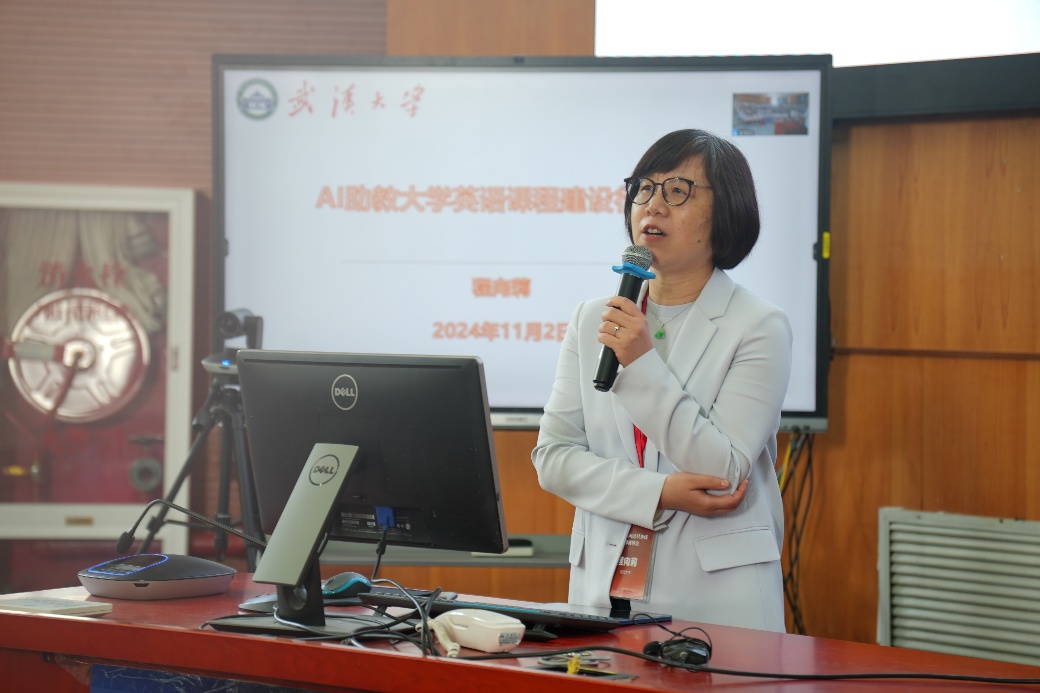 武汉大学程向莉教授的报告题为“AI助教大学英语课程建设行动研究”展示了AI在大学英语课堂中的角色转变。程教授基于一门英语创意写作课程的实践经验,分享了AI助教对课堂教学的支持效果,讨论了AI技术对教师角色的深远影响,指出AI在课堂中虽尚不能替代教师,但可作为有力的辅助工具。