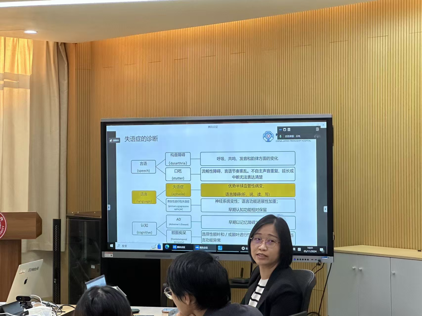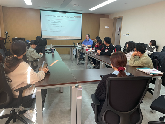 11月5日,张玉梅教授、Matthew Walenski博士和葛丽君医师就失语症的语言评估进行了专业授课。张玉梅教授以《基于神经网络的失语症评定》为题,结合实际案例,深入说明神经影像技术在失语症诊断中不可或缺的作用。Matthew Walenski博士的授课主题为What can we learn from narrative samples以及Translating online research into assessment tools,详细阐述了失语症研究与诊断之间的密切联系。葛丽君医师则从言语康复师的角度,分享了临床评估的要点与方法。会后,参与者体验了无创脑深部电刺激技术的相关培训。