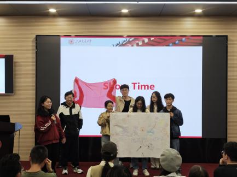 随后,新生们随机组成四支活力四射的队伍。在紧张而充满期待的氛围中,各队成员迅速投入团队建设中,他们集思广益,创意无限,不仅设计了独具特色的队名、队旗、海报、口号和造型,还在规定时间内完成了自我介绍和团队展示。展示环节中,各队伍以不同的风格和创意展现了各自的风采:有的队伍以机智幽默的介绍赢得了满堂彩,有的队伍则凭借精美的队旗和造型展现了团队的艺术才华,令人印象深刻。
