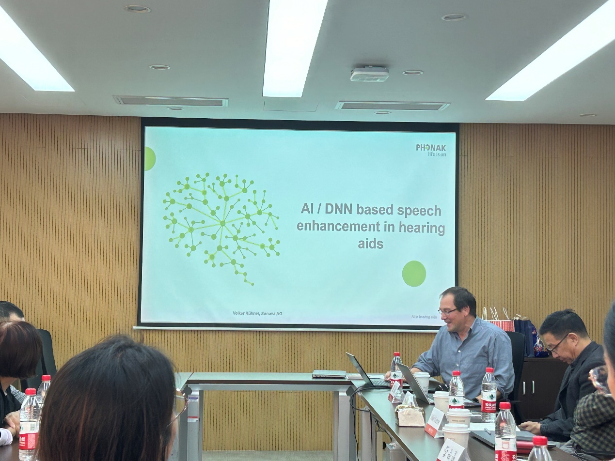 Volker Kuehnel博士作题为《以人工智能和深度神经网络为基础的助听器言语增强技术》的主题发言。他向大家介绍了团队项目中针对助听器设备设计和应用的人工智能和深度神经网络算法言语增强技术以及软硬件开发成果,展示了新算法带来的声学性能优化效果和用户体验反馈。他参与的项目涵盖了如何通过先进的算法改善听力设备在不同声学环境和语言环境(包括英语、德语、汉语等等)中的表现,特别是通过优化双耳听觉处理,提升听力受损者在复杂噪声环境中的语言理解能力。他的讲座极具专业性,介绍深入浅出,让与会者对算法提升助听器的适配性和用户体验的前沿领域有了全新的认识和了解。