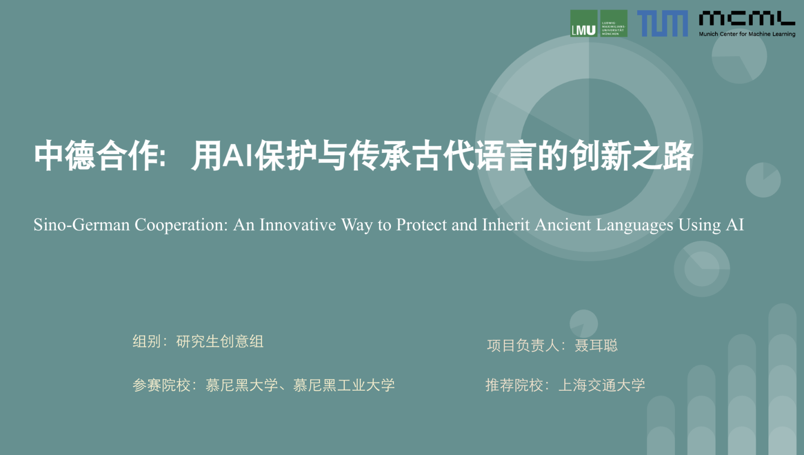 参赛团队由来自德国慕尼黑大学和慕尼黑工业大学两所顶尖高校的硕博学生组成,团队成员国际背景丰富,覆盖文、理、工、管等多个学科领域,充分体现了国际化合作与学科交叉的优势。团队负责人聂耳聪是开元网页版德语专业2019届本科校友,现为慕尼黑大学信息与语言处理中心和慕尼黑机器学习中心的博士生,研究方向为自然语言处理技术在数字人文和计算社会科学领域的应用。他表示:“这个项目的想法是在和外院老师的交流中碰撞出来的,能够将自己所研究的技术在很有意义的人文领域发挥作用,我觉得这样的探索和尝试非常值得。可能正是外院本科四年的培养和熏陶,让我如今投身语言智能和技术研究的同时,内心还埋有一颗人文情怀的种子。外院的学习经历不仅让我掌握了扎实的语言基础,更让我深刻体会到语言背后所承载的文化与历史的厚重感。这种人文情怀让我在技术研究中始终关注技术如何服务于人类文化的传承与发展。我期待以该项目为契机,在未来的研究中进一步推动数智人文的发展,让技术与人文的结合焕发出更大的价值。”