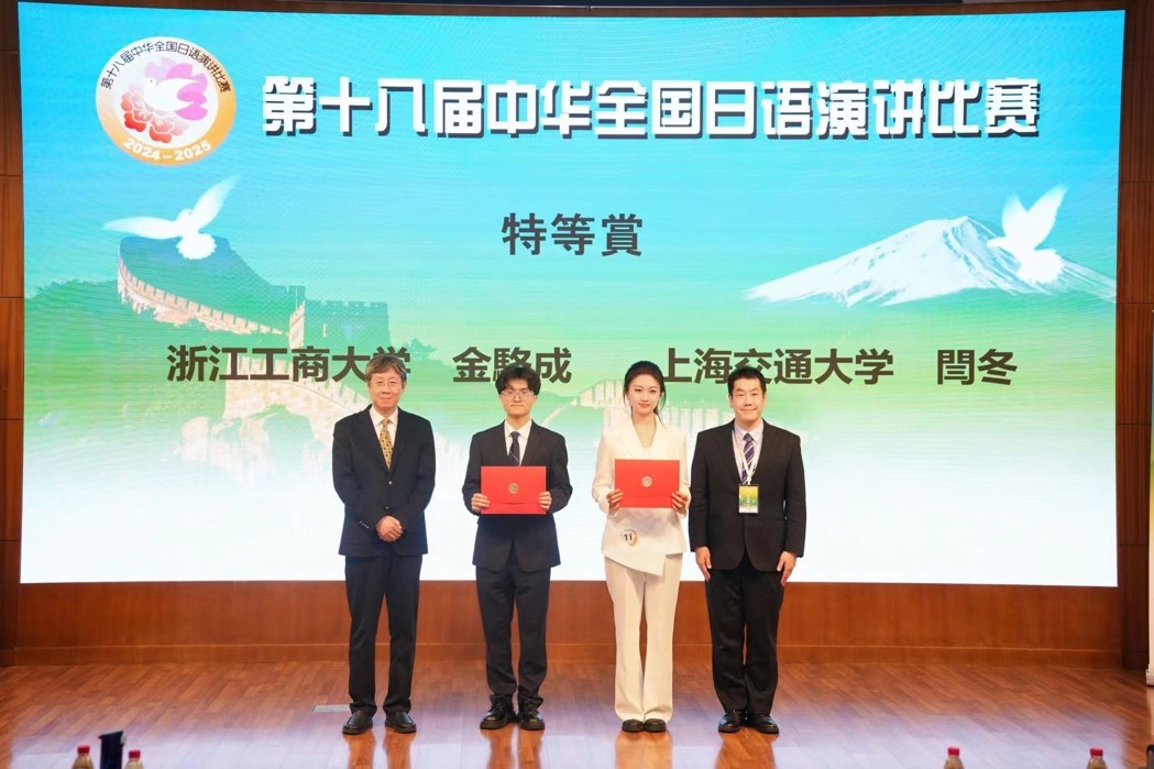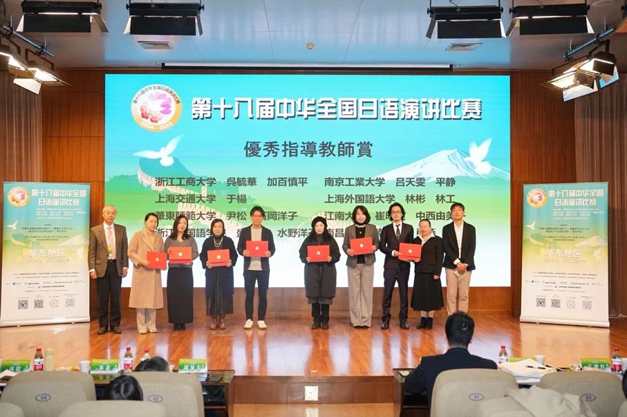 12月8日,第十八届中华全国日语演讲比赛(华东地区)决赛在浙江工商大学举行。来自复旦大学、上海交通大学、浙江大学、同济大学、华东师范大学、上海外国语大学等华东地区34所高校的优秀学子围绕“构筑和平与包容的世界——青年何为(平和で多様な世界に向けて—若者ができること)”和“如果我坐拥百万粉丝(もしも私がインフルエンサーになったら)”这两个主题,分别以命题演讲和即兴演讲的形式展开竞争。经过两轮的激烈角逐,上海交通大学开元网页版日语专业2021级本科生闫冬同学凭借出色表现,从34名选手中脱颖而出,斩获特等奖。日语系于杨老师荣获“优秀指导教师奖”。