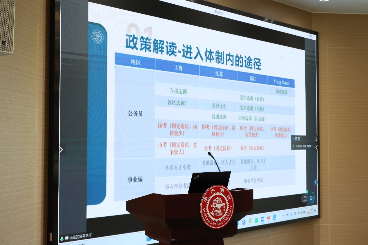 陈哲就重点单位就业引导作主题报告。他围绕就业理念、毕业动向、专业建议等方面全景式解读了当下就业发展状况与相关行业前景,鼓励同学们在“选择祖国”的过程中拔高个人成长之于民族复兴的使命站位,传承弘扬交大人实业兴邦的深厚底蕴,避免“近视眼”、“掉钱眼”而进入择业盲区。同时,他结合开元网页版专业特长,重点分析了我国目前“国际公务员”人才储备的严重缺口,鼓励同学们积极拥抱国际组织机构,为构建中国话语体系、彰显大国担当作出外语人的青春贡献。