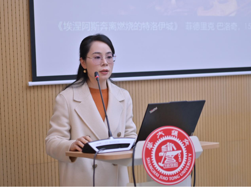 上海交通大学长聘教轨副教授丁瑶的发言聚焦昆图斯的《特洛伊史诗》,着重观照了该部作品对希腊文化的继承与重构,及其对罗马社会思想的影响。她指出,世俗化的英雄主义或去极端化的情感表达,在一定程度上反映了作家渴求多元、融合和稳定的帝国文化环境, 继而被视为后古典主义文学的典型特征。
