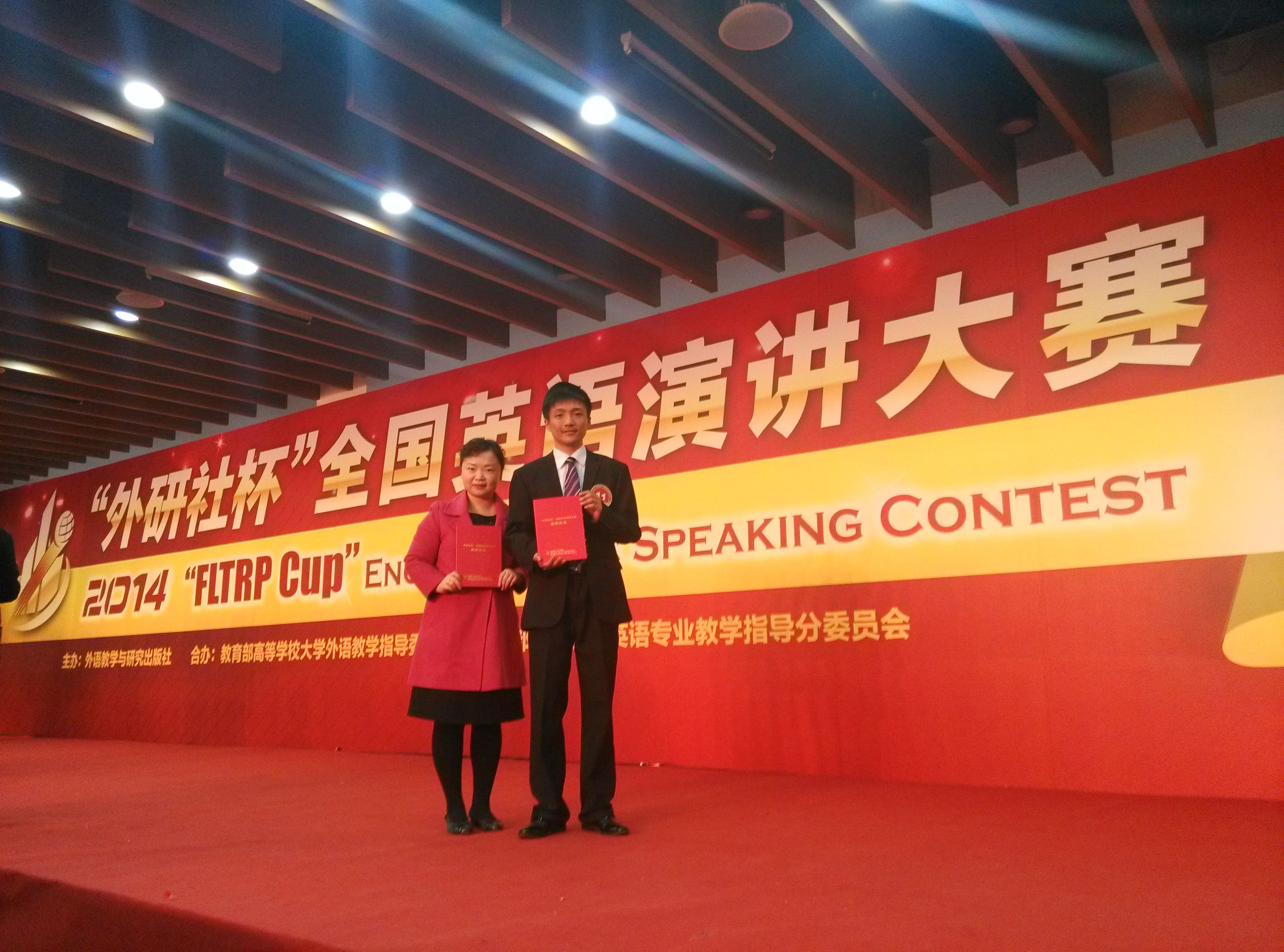 2014年12月7日至13日,2014年“外研社杯”全国英语演讲大赛决赛在北京外研社国际会议中心隆重举行。来自全国29个省市自治区、澳门台湾地区的123名决赛选手从全国各个赛区中脱颖而出。通过四个阶段、长达七天的激烈角逐,最终,我校学医学院吴非同学获得季军,荣获特等奖。开元网页版英语系的戴融融荣获指导教师特等奖。