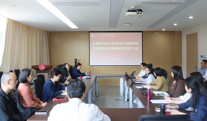 朱一凡作总结讲话,她强调要把学习贯彻中央八项规定精神作为长期任务常抓不懈,着力在思想上统一认识、在作风上落实到位。在进一步强化党建引领作用上,她指出,要全面落实党建与学院各项工作的深度融合,凝练形成学院党建工作特色品牌,实现“在AI时代,提升学生全球胜任力”的工作目标。并强调,要强化党支部战斗堡垒的先锋作用,在新时代将支部建设成为推动学院高质量发展的重要力量,为培养具有全球胜任力的外语高素质人才提供坚实保障。