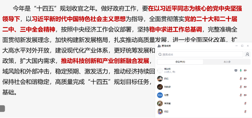 在会议的第三部分,石雅馨引领支部成员深入研习李强总理于十四届全国人大三次会议上,代表国务院所呈递的《政府工作报告》。该报告主要涵盖 2024 年工作回顾、2025 年经济社会发展总体要求和政策取向,以及 2025 年政府工作任务三大板块。石雅馨书记着重指出,党员同志们应当密切留意“两会”新词,如“投资于人”、“具身智能”、“6G”等。这些词汇蕴含着时代发展的新趋势与新要求,彰显出国家在经济、科技等多领域的战略布局与前瞻性思考。在学习过程中,党员同志们积极踊跃,就部分词汇各抒己见,分享自身感悟。
